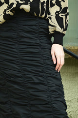 A transitional staple that works for AM to PM, work to play, and everything in between. Crafted in the ‘Ruche Hour’ cotton blend fabric, this maxi column skirt features ruching throughout, from waist to hem. A back split allows for maximum movement, making this skirt practical for everyday wear. Pair this with a voluminous COOP blouse or pair back with a simple tee, the styling options are endless.